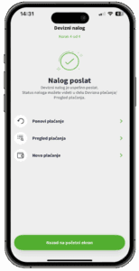 Nakon izvršenog plaćanja, u m-bank aplikaciji će na ekranu biti prikazan status transakcije. Pored toga, status naloga možete proveriti u delu LISTI PLAĆANJA u okviru opcije PLAĆANJA.
